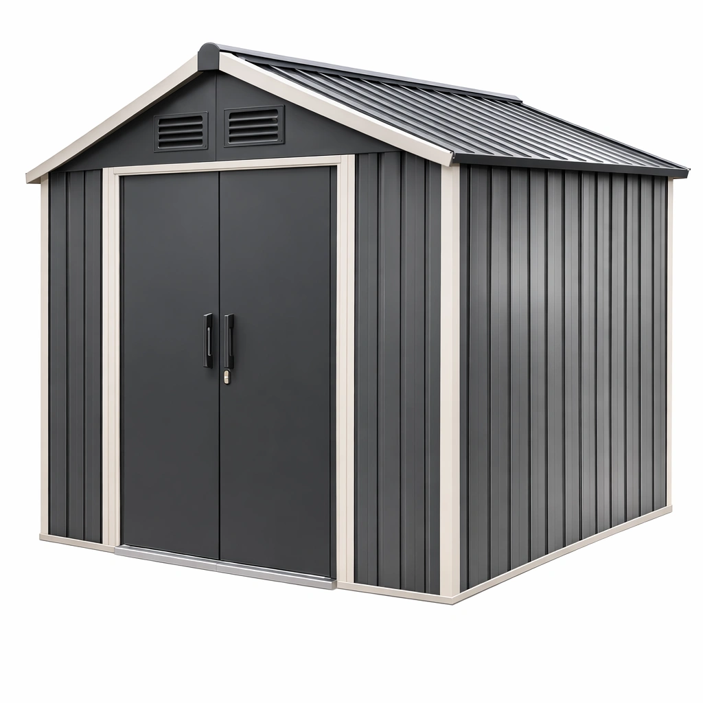 Gartenhaus Metall Stahl Dunkelgrau mit Doppeltür und Belüftung